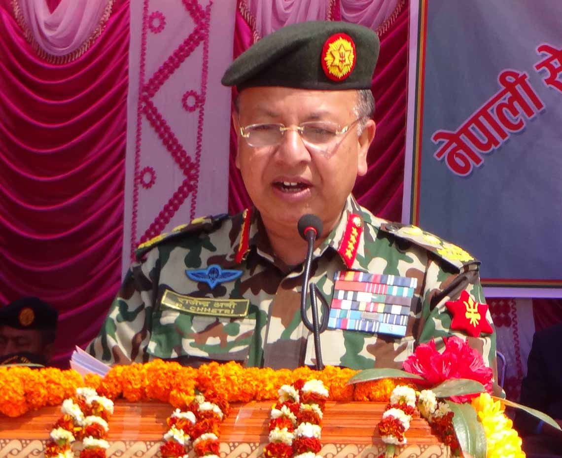 राजनीतिक कदमबाट सम्भव नभए सेना स्वभाविकरूपमा अघि आउने उनले बताए। फागुन २७ गते विप्लव नेतृत्वको नेकपामाथी सरकारले प्रतिवन्ध लगाएसँगै वरिष्ठ नेता हेमन्तप्रकाश वली (सुदर्शन) सहित ३ दर्जन नेता÷कार्यकर्ता पक्राउ परिसकेका छन्। संविधान र कानुन विरोधी गतिविधिमा संलग्न जोसुकैलाई कारबाही गर्न सधै सरकारलाई अधिकार भएको तर दलमाथि नै प्रतिबन्ध लगाएर निषेध गर्न खोज्दा असन्तुष्ट पक्ष झन् बलियो हुने उनको तर्क छ। विप्लवले सोमबार मात्रै विज्ञप्ति जारी गर्दै आफूहरूमाथि लगाइएको प्रतिबन्ध फुकुवा नगरे सरकारमाथि प्रतिबन्ध लगाउने चेतावनी दिइसकेका छन्। यसलाई पूर्वप्रधानसेनापति क्षत्रीले मुठभेडको जोखिम रहेको औंल्याए।