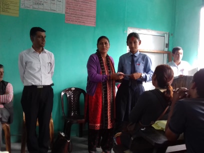 उक्त रकम शुक्रवार विद्यालयमा आयोजित शुभकामना आदान प्रदान कार्यक्रममा विद्यार्थीद्वय ईश्मा गुरुङ र शान्ति घलेलाई विद्यालयमा व्यवस्थापन समितिका अध्यक्ष चन्द्रा थापा, प्रधानाध्यापक कृष्णप्रसाद आचार्य , शिक्षक ईश्वर खड्काले हस्तान्तरण गर्नुभयो । ईश्माले २५ हजार ६ सय ४० र शान्तिले ५ हजार ८ सय २५ रुपैयाँ सहयोग स्वरुप प्राप्त गरेकी छिन् ।