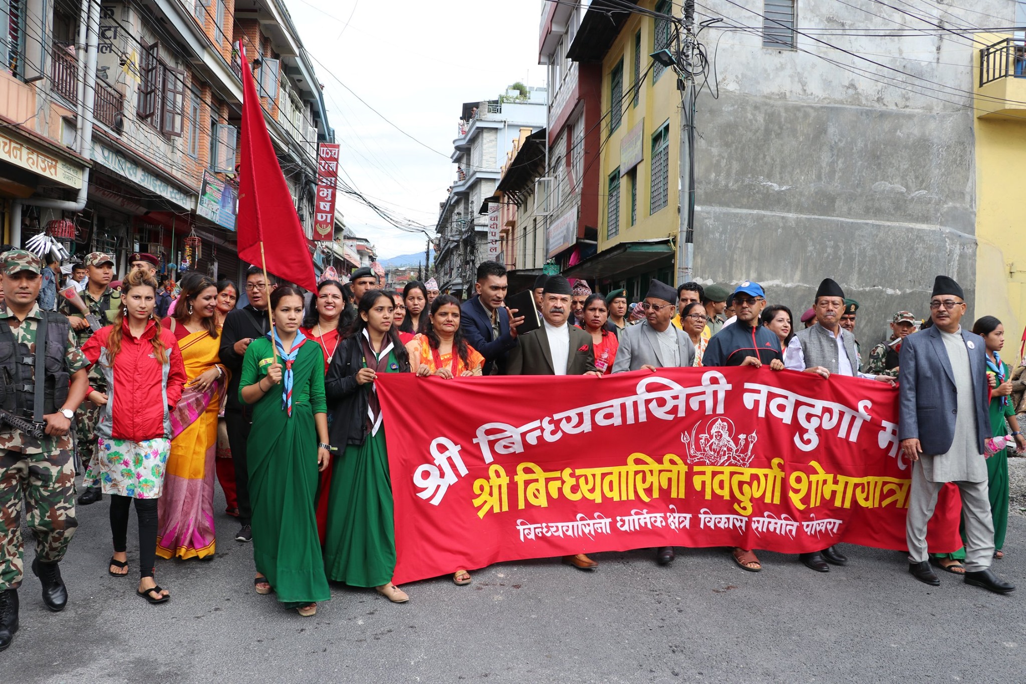 शोभायात्रामा नवकन्या आरुढ नौ रथ, विन्ध्यवासिनी मन्दिरको झाँकी, विभिन्न भजन समूह, जातीय भेषभूषा, सांस्कृतिक झांकीहरु, नेपाली सेना, नेपाल प्रहरी, सशस्त्र प्रहरी, नेपाल स्काउट, आमा समूह तथा विभिन्न धार्मिक, सामाजिक, शैक्षिक, बैंक विक्तिय संघ संस्थाहरुको सहभागिता रहेको थियो ।