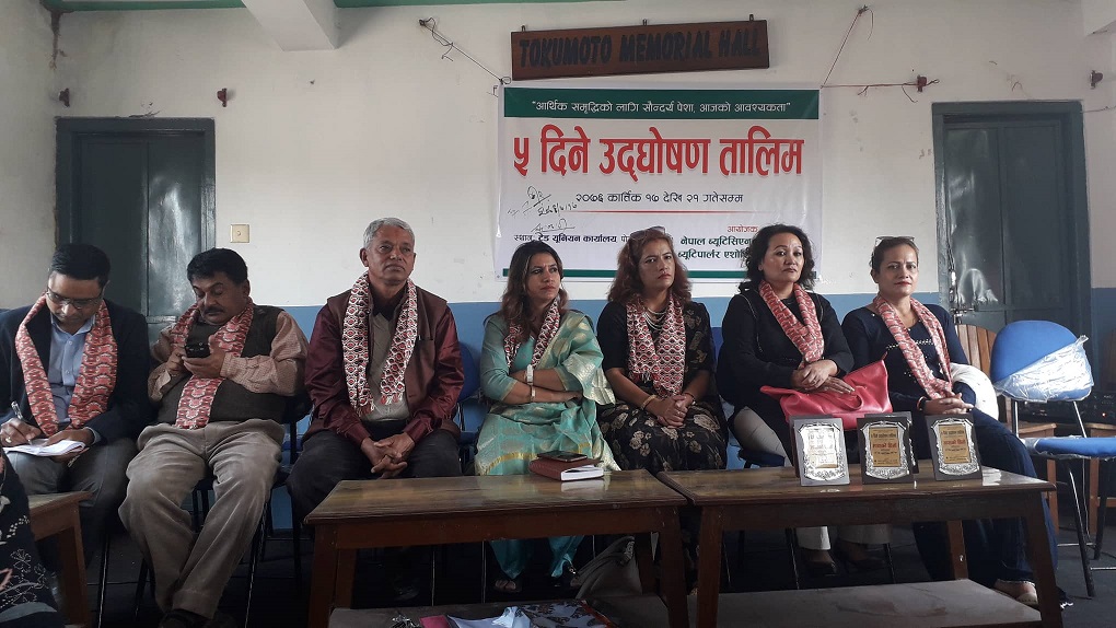 आर्थिक समृद्धिको लागि सौन्दर्य पेशा, आजको आवश्यकता भन्ने मुल मन्त्रलाई आत्मसाथ गर्दै नेपाल व्युटिसियन संघ कास्की र व्युटी पार्लर एसोसियन कास्कीको संयुक्त आयोजनामा पाँच दिने उद्घोषण तालिम आईतबारबाट सुरु भएको छ ।