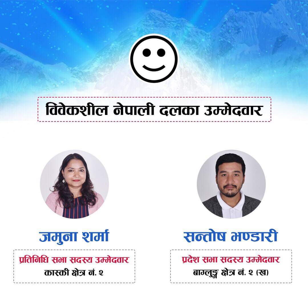 जमुनाले एचआईभी पीडित, द्वन्द्वपीडित, मानसिक रूपमा समस्यामा परेका बालबालिका तथा महिलालाई विभिन्न माध्यमबाट अतुलनीय सहयोग गर्दै आएकी छिन् । त्यस्तै, विवेकशील नेपाली दलले बागलुङ २ (ख) प्रदेशसभाका लागि सन्तोष भण्डारीलाई उम्मेदवार बनाउने निर्णय गरेको छ। भण्डारी बुर्तिवाङका युवा उद्यमी तथा व्यवसायी हुन् ।