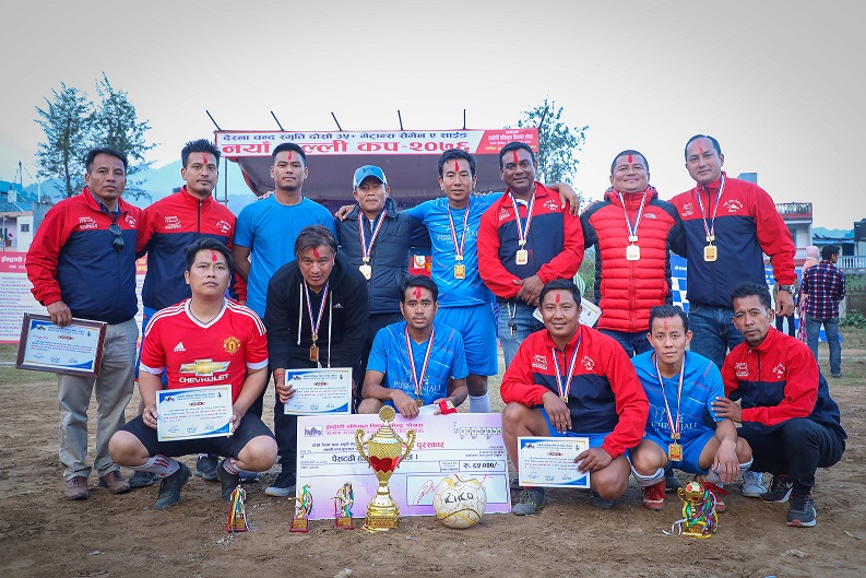 ईन्द्रेणी एकीकृत विकास केन्द्रको आयोजनामा सम्पन्न ‘देश्ना चन्द स्मृति दोस्रो भेट्रान्स (३५ वर्ष माथि) सेभेन ए साइड नयाँगल्ली कप’ को उपाधि आयोजक नयाँगल्ली) ले जितेको छ ।