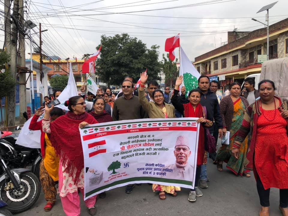 एनले निरन्तर ६० वर्षको निस्कलंकित ईमान्दारीको राजनीति गरेका कांग्रेस उम्मेदवार खेमराज पौडेललाई कास्की क्षेत्र नं २ को प्रतिनिधिसभा उपनिर्वाचनमा जिताउनुको विकल्प नभएको बताए । ‘अहिले मतदाता जवान पनि धेरै छन् । हामी ठाउँठाउँमा जाँदा त्यो जमातलाई पाका उम्मेदवार पौडेलको उम्मेदवारीले हौसला बढाएको छ’, उनले भने ।