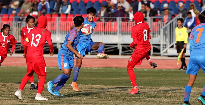 १३ औं दक्षिण एसियाली खेलकुद (साग) अन्तर्गत भइरहेको महिला फुटबल प्रतियोगितामा भारतले विजयी सुरुआत गरेको छ । पोखरा रंगशालास्थित फुटबल मैदानमा मंगलबार भएको खेलमा भारतले माल्दिभ्समाथि ५–० को फराकिलो अन्तरले जित निकालेको हो ।