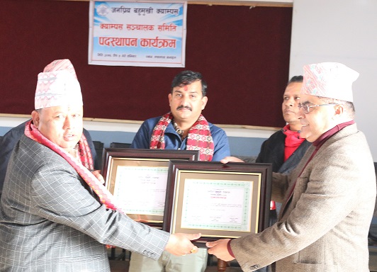 जनप्रिय बहुमुखी क्याम्पस सञ्चालक समितिका नवनिर्वाचित समितिलाई शनिबार पदस्थापना तथा शुभकामना र बधाई ज्ञापन गरिएको छ । गत शनिबार भएको आठौं अधिवेशनमा तारा गिरी अध्यक्षमा निर्वाचित भएका थिए । निर्वाचन समितिका संयोजक मुकुन्द अर्यालले अध्यक्ष गिरी सहित सञ्चालक समितिका सदस्यहरूलाई पद तथा गोप्यनीयताको सपथ ग्रहण गराए ।