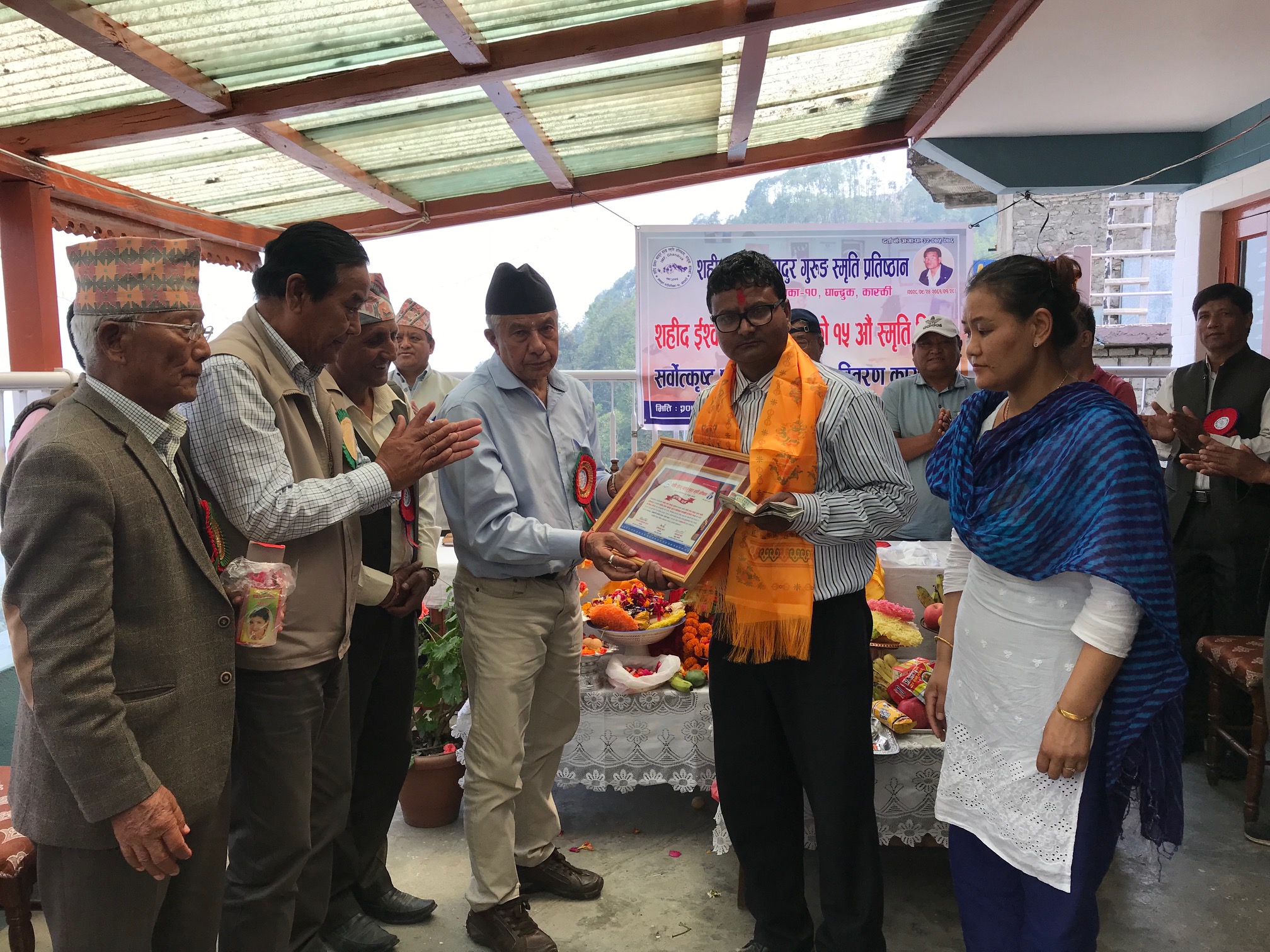 यो तेस्रो छात्रवृत्ति पुरस्कार हो । यसअघि सो पुरस्कार मेश्रमवराह मा.वि. का छात्रा अमृता क्षेत्री र फुम्रोखुँ माविकी रविना थापाले पाएका थिए । शहीद ईश्वरबहादुर गुरुङ स्मृति प्रतिष्ठान गठन र शहीदको नाममा छात्रवृत्ति पुरस्कार एवं अक्षकोष स्थापनामा महत्वपूर्ण भूमिका खेलेवापत नेपाली काँग्रेस घान्द्रुक इकाई समितिका सभापति ललित गुरुङ पनि सम्मान गरिएको थियो ।