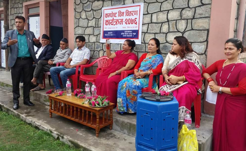 वडा नम्बर ८ का वडाध्यक्ष रुद्रनाथ बरालले एक समारोहका विच समुहमा आवद्ध ५५ जनालाई कम्पोष्ट मल बिन वितरण गरेका हुन् । कार्यक्रमका बोल्दै वडाध्यक्ष बरालले वितरण गरिएको भाँडालाई आफ्नैं सम्झिएर जतनका साथ प्रयोग गर्न आग्रह गरे ।